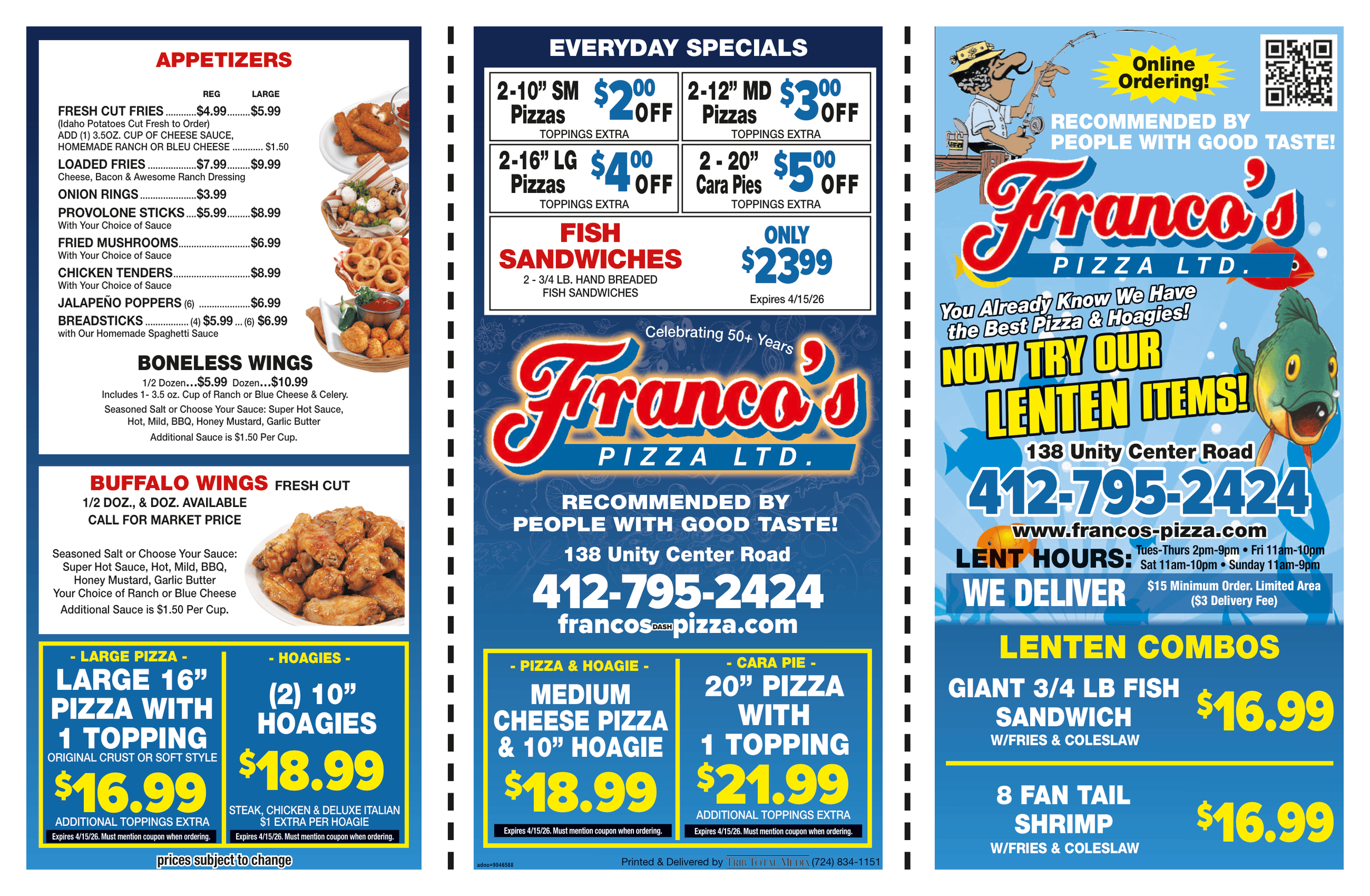 Lent menu now available!